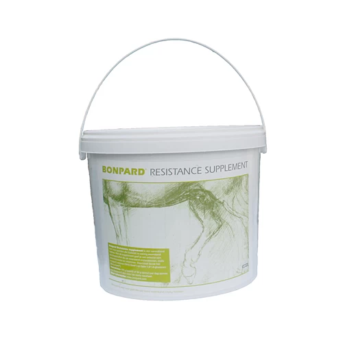 Resistance ist ein Supplement von Bonpard das dazu beiträgt, die Widerstandsfähigkeit Ihres Pferdes oder Ponys zu stärken, etwa wenn das Tier durch Stress, Krankheit, Überempfindlichkeiten oder ein Sommerekzem geschwächt ist. Das Ergänzungsmittel enthält unter anderem Kupfer, Zink, Selen, Vitamin B-Komplex, Vitamin C und Vitamin E. Darüber hinaus ist Resistance reich an Omega-3-Fettsäuren aus Algen.