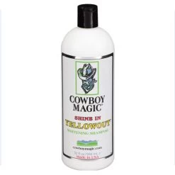 Es kann schwierig sein, gelbe Verfärbungen wie Urinflecken aus dem Fell Ihres Pferdes herauszubekommen. Shine In Yellow Out Shampoo von Cowboy Magic bietet in diesem Fall die ideale Lösung. Das Shampoo entfernt nicht nur die gelben Flecken aus dem Fell Ihres Pferdes oder Ponys, sondern bringt auch die natürliche Haarfarbe wieder zum Leuchten. Shine In Yellow Out eignet sich nicht nur für Pferde mit hellem Fell, auch Pferde mit andersfarbigem Fell (Rappen, Braune, Füchse, Rotschimmel, Palomino oder Schecken) profitieren von Shine In Yellow Out. Das Shampoo macht das Fell seidig weich und verleiht ihm einen wunderbaren Glanz.