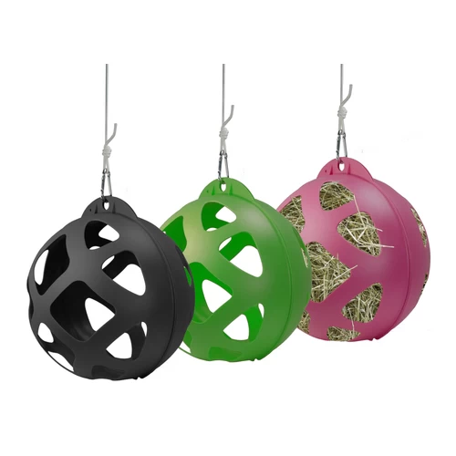 Der Heu Slowfeeder ist ein großer, aufhängbarer Spielball für die Weide, die Scheune oder den Anhänger. Den Ball können Sie mit Heu befüllen und es daher für Ihr Pferd spannender machen, an das Heu zu gelangen. Dadurch trägt der Ball dazu bei, dass keine Langeweile aufkommt. Die Kugel besteht aus UV-beständigem und lebensmittelechtem Kunststoff. Die Öffnungen des Balles geben das Heu allmählich frei, sodass es gefressen werden kann.