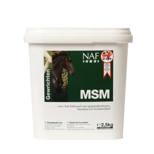 Pferde werden fĂŒr verschiedene (sportliche) Zwecke eingesetzt und all diese Arten von Sport stellen wiederum jeweils andere (hohe) Anforderungen an das Skelett und an die Muskeln von dem Tier. Wenn die Gelenke von Ihrem Pferd oder Pony UnterstĂŒtzung benötigen, können Sie ihm das NAF MSM von NAF Equine geben. Das Methylsulfonylmethan in diesem ergĂ€nzenden Tierfutter ist reich an Schwefel. Diese Kombination an Ingredienzien trĂ€gt zu der Erhaltung der Gesundheit der Muskeln, des Bindegewebes, der Sehnen, BĂ€nder und Gelenke bei.