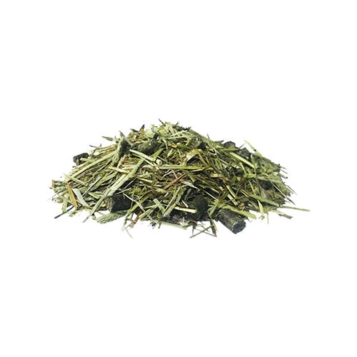 Luzerne, Gerstenstroh, HaferstÀngel, Weizenkleie, Zuckerrohrmelasse, Gras, Gerste, Sojaöl und Mineralstoffe.