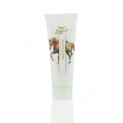 Die Muscle Crème von Rapide pflegt die Muskeln und Sehnen von Ihrem Pferd oder Pony. Die Creme hat einen positiven Einfluss auf die Blutzirkulation und hilft, den Milchsäuregehalt in dem Blut und den Muskeln zu senken. Die Muskelcreme ist einfach zu verwenden und in einer Tube mit 250 ml erhältlich.
